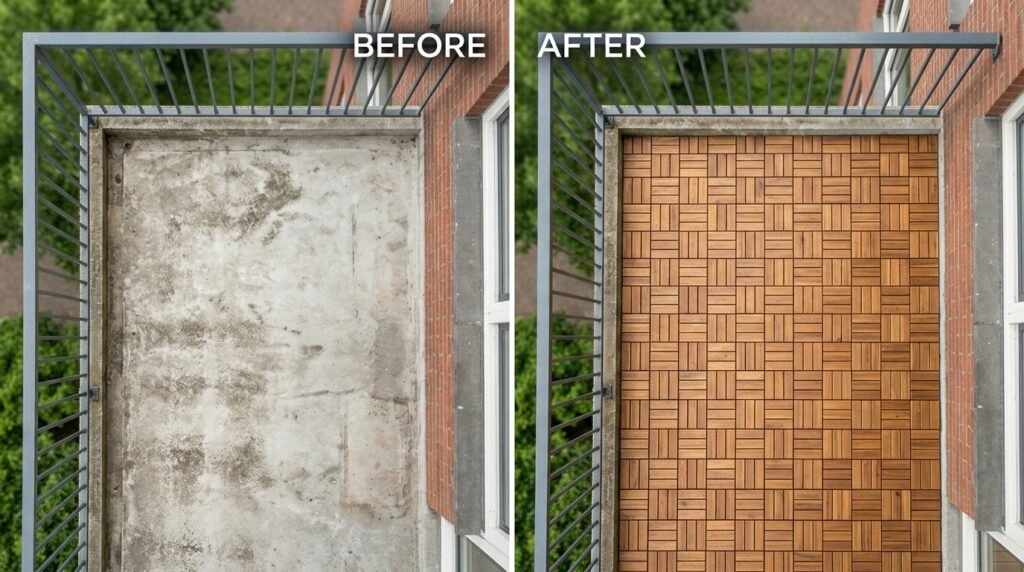 Cost: $1.50–$5 per tile (12×12 inch). A 60 sq ft balcony would cost $70–$300 depending on material.