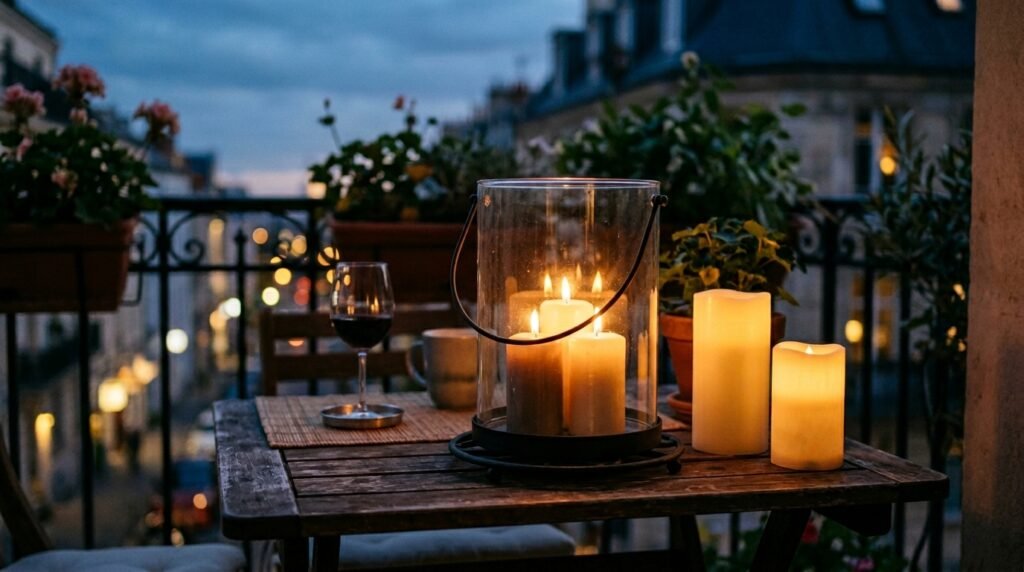 Pro tip: Never leave real candles unattended on a balcony, especially in dry or windy conditions. A flameless candle is almost indistinguishable from the real thing once it’s inside a glass lantern — and considerably safer.