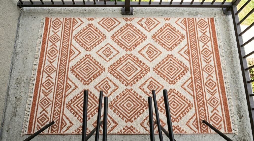 Pro tip: Anchor the rug with furniture legs so wind doesn’t lift it. On very exposed balconies, consider rug tape or peel-and-stick grippers on the underside.