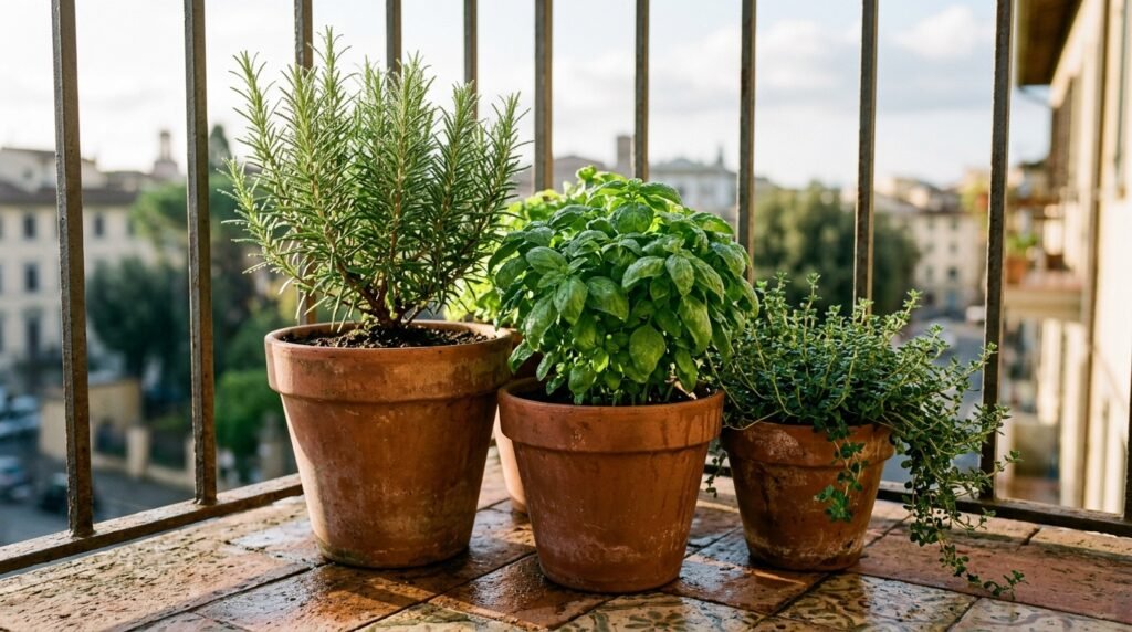 Best plants: Herbs (basil, mint, chives, parsley), succulents, trailing pothos, ferns, strawberries. Match sun requirements to your balcony’s exposure.