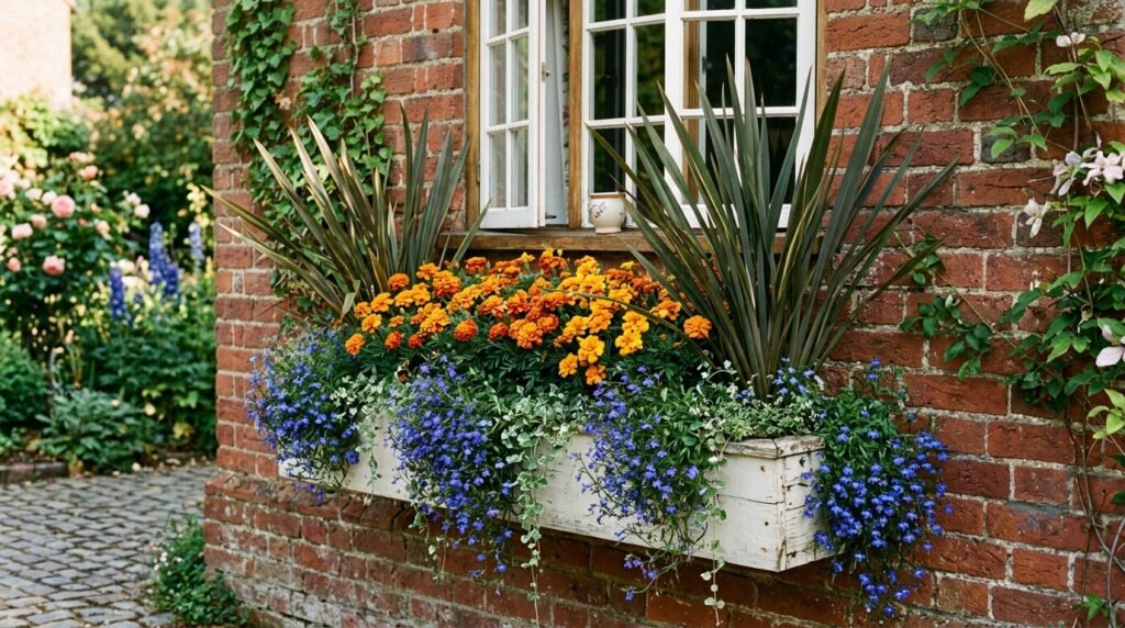 Before you scroll: If you want the single fastest upgrade, go straight to Idea #3 — the Thriller/Filler/Spiller formula. It’s the most reliable framework in window box gardening, and once you understand it, every window box you plant will look more intentional.