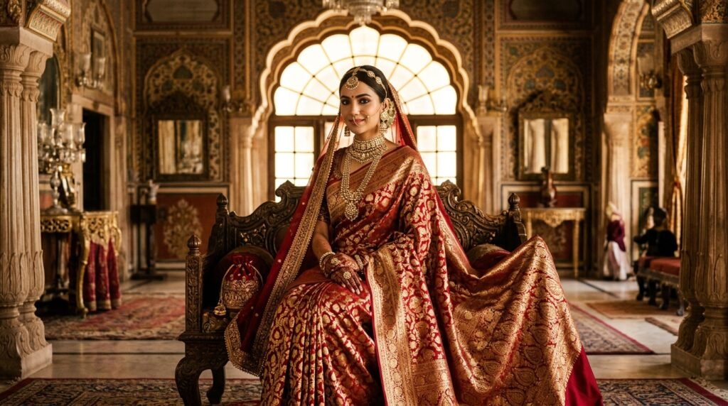 Styling tip: Banarasi silk is heavy — you will feel it on your shoulder. Practice wearing it at home before a long event so you’re comfortable adjusting the pallu.
