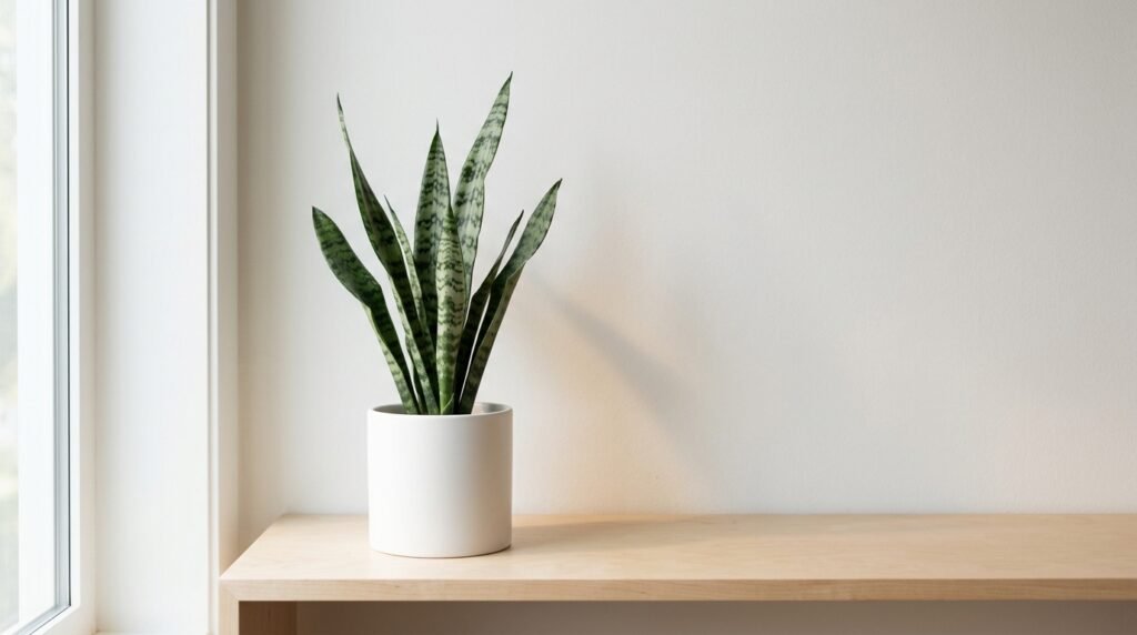 The snake plant is the obvious choice — and it earns that reputation. Its vertical, sword-like leaves are almost architectural. It doesn’t demand much space, doesn’t need much care, and adds life without adding noise. It belongs in a minimalist room the way a well-placed lamp does: quietly essential.